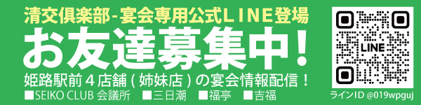 清交倶楽部では、姫路駅から徒歩圏内に4店舗を展開しており、少人数から大人数まで対応可能なお部屋・会場をご用意しております。