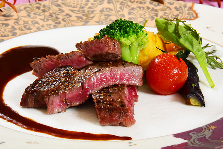 - B)肉料理: 牛フィレステーキ