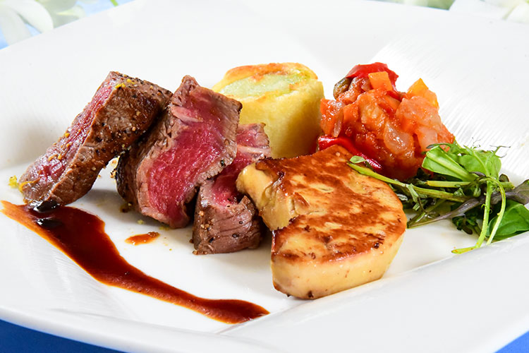 B)黒毛和牛フィレステーキ フォアグラのソテー