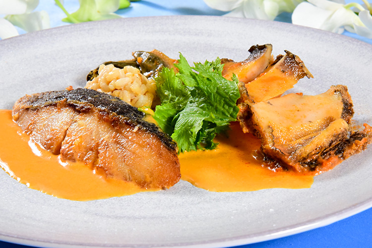 ブリのハチミツ生姜風味 白ネギ・くるみのロースト